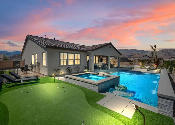 Luxury Desert Escape Private Pool Putting Green Outdoor Oasis villa is equipped with a fully-fitted kitchen and provides an electric kettle, a refrigerator, and kitchenware. Guests can reach Luxury Desert Escape Private Pool Putting Green Outdoor Oasis villa by car from Palm Springs airport in 43 minutes.
